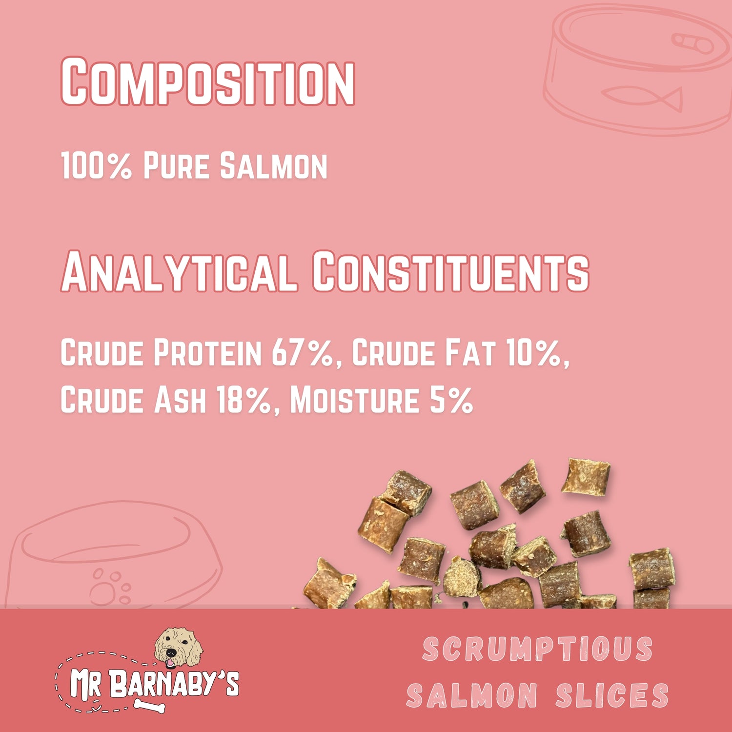 Natural and tasty salmon slices that are packed with omega-3 fatty acids, they support healthy skin, a shiny coat, and overall well-being. These soft, flavourful slices are perfect for training or as a nutritious reward for your pup.